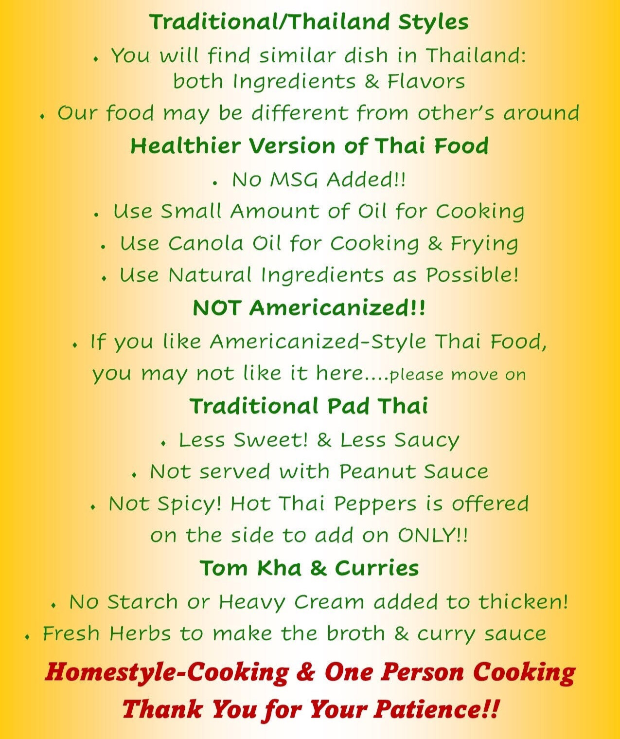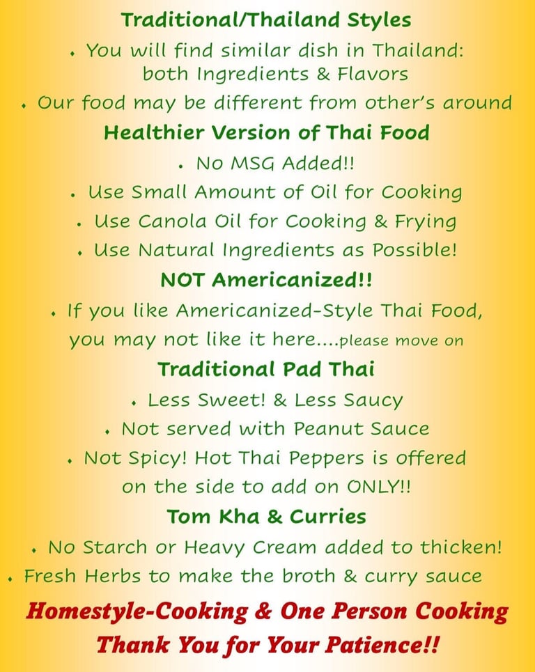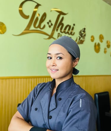 Now, I'm recreating my family's recipes and the flavors I grew up with, using the best ingredients I can find in Jacksonville. My food might be a little different from other Thai restaurants, but it’s true to the flavors of Thailand. I cook with heart and hope everyone enjoys the taste of authentic Thai cuisine.
